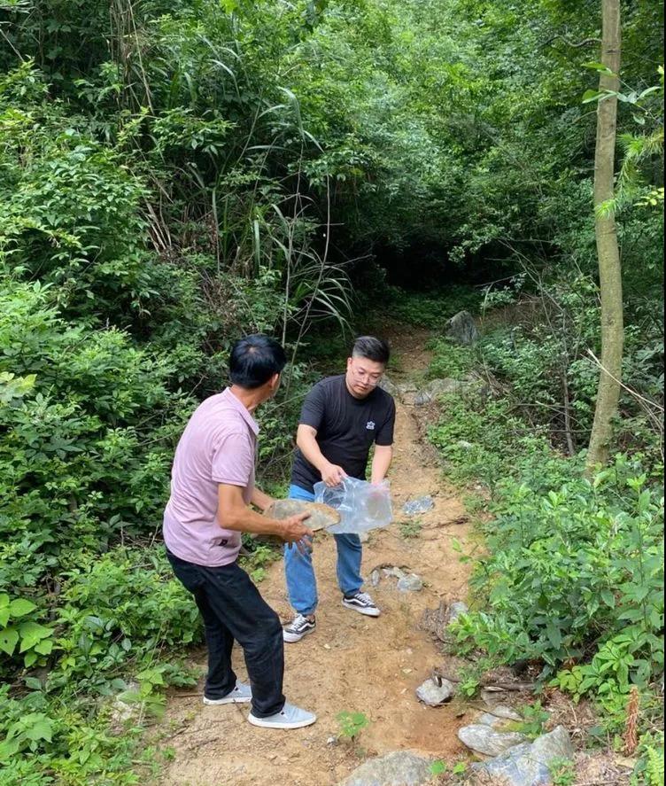 “看,這些礦石大小正好做檢測樣本。”只見,姜海森仔細挑選著石頭,并拿出袋子把石頭裝好,我說:“我來拿。”他卻笑笑說“沒事,這石頭也不重,下山的時候我們都要小心點,看好腳下的路。”