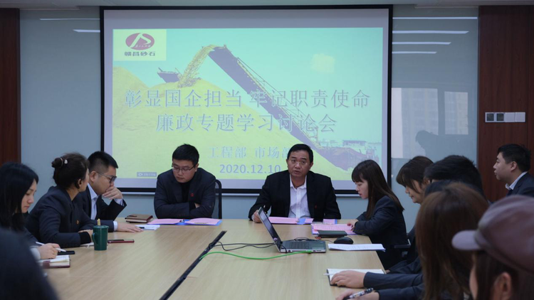 12月10日,贛昌砂石公司工程部、市場部聯(lián)合組織開展了《彰顯國企擔當 牢記職責使命》的廉政教育專題討論會。