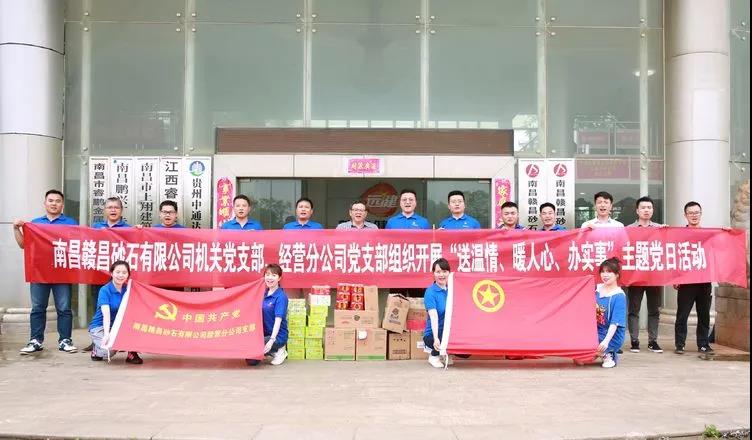 6月11日下午,南昌贛昌砂石有限公司機關(guān)黨支部、經(jīng)營分公司黨支部、機關(guān)團支部聯(lián)合開展“送溫情、暖人心、辦實事”主題活動。十余名黨員、入黨積極分子、發(fā)展對象及共青團員向近期忙于采區(qū)開采作業(yè)的新建區(qū)分公司(新贛開采部)的同事們送上了貼心的防暑降溫物資。
