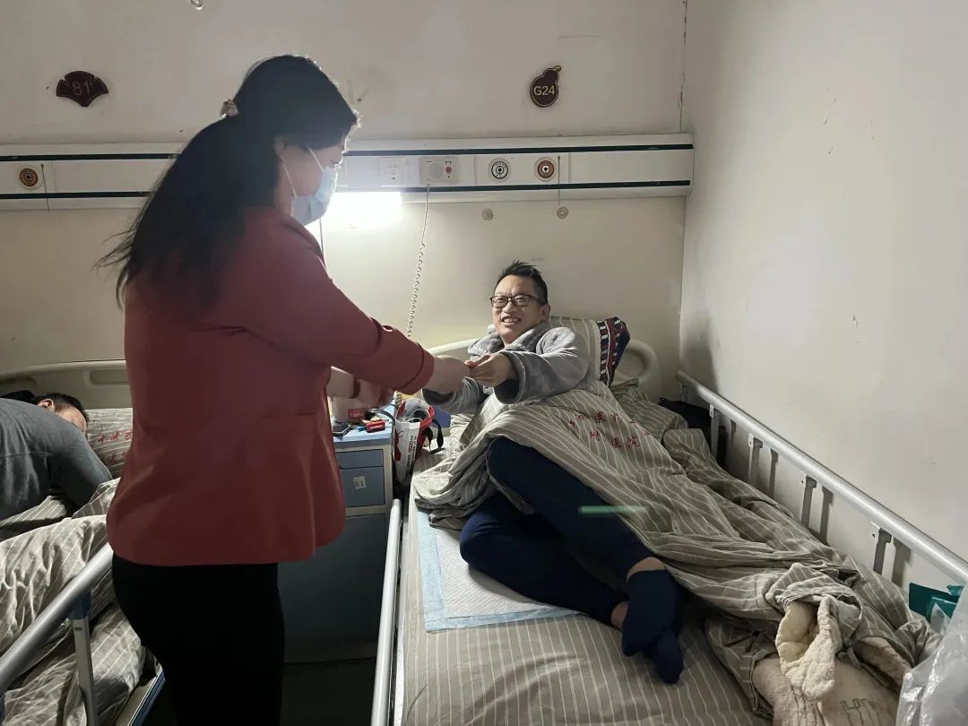 領(lǐng)導及同事們的關(guān)心讓繆亮星深切地感受到了溫暖,他表示會積極配合治療,爭取早日康復(fù)出院。