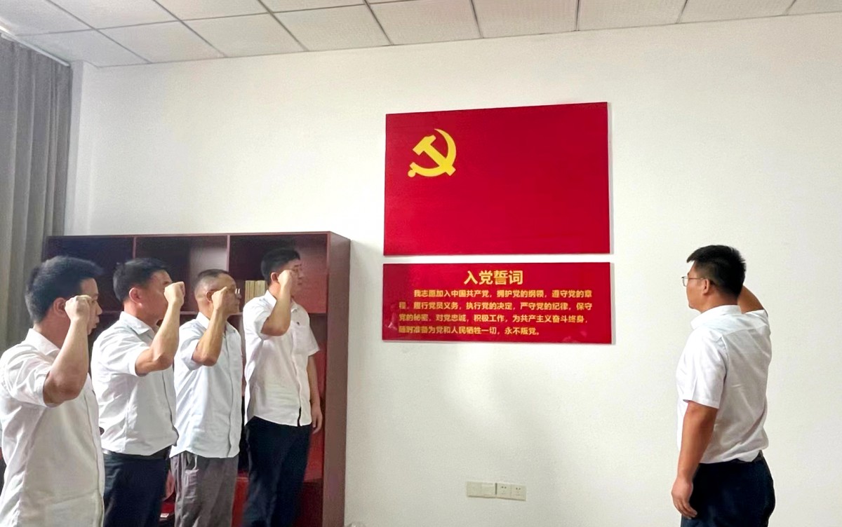 最后,活動為本季度5名同志集體過政治生日,并向過“政治生日”黨員贈送生日賀卡,5名過“政治生日”黨員代表深情回顧了各自入黨心路歷程,分享了在黨收獲成長,表達了對黨的崇敬和熱愛之情。在熊澄書記的帶領下,五位同志面向鮮紅的黨旗,高舉右手,重溫入黨誓詞,再一次接受黨性淬煉和思想洗禮。