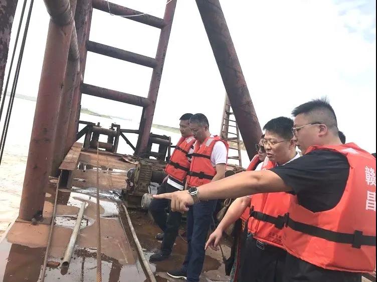 最后,劉順保一行來到了南贛2號采區(qū),登上采砂船實地查看了采區(qū)開采、汛期的生產(chǎn)安全、防汛措施等情況,并提出幾點要求:一、要在安全生產(chǎn)的前提下,提高開采量;二、要提前構(gòu)建應(yīng)急方案,在設(shè)備損壞的情況下,第一時間換上替補設(shè)備;三、要提質(zhì)增效,盡快打開作業(yè)面,增加可開采設(shè)備數(shù)量。