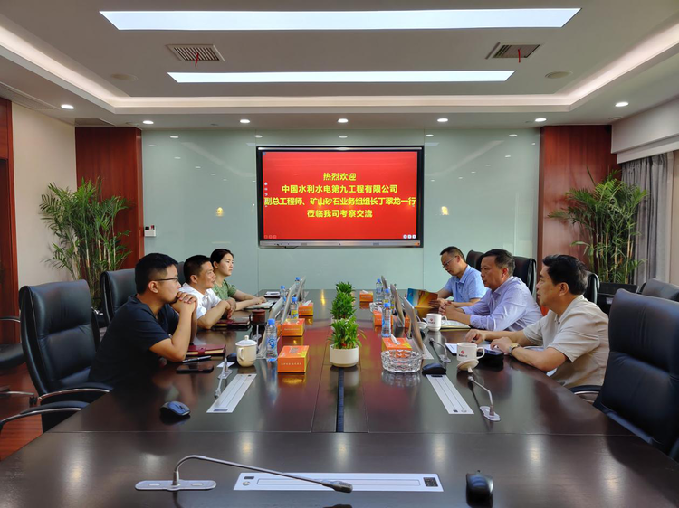 7月14日上午,中國水利水電第九工程有限公司副總工程師、礦山砂石業(yè)務(wù)組組長丁翠龍一行蒞臨我司考察交流,公司總經(jīng)理陳鴻主持會議,市場部、企業(yè)管理部負責(zé)人陪同參會。