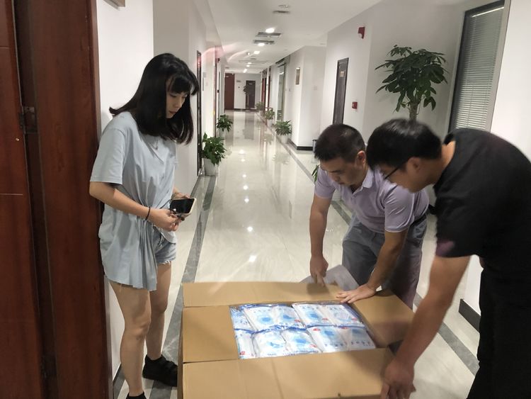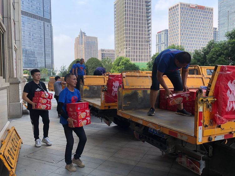 了解到部分砂場24小時發(fā)貨,食物儲備嚴重不足的情況,綜合部連夜調(diào)集公司現(xiàn)有物資,并緊急采購西瓜、八寶粥、方便面、王老吉等防暑降溫食物,會同配送服務中心的“小黃車”奔赴至各個一線砂場。面對酷暑高溫和搬運人手不足的情況,綜合部同事親自上陣搬車裝運,就是為了能讓一線員工早一點收到防汛慰問物資。