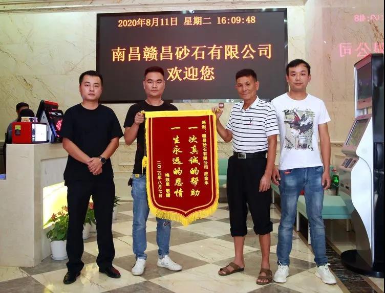 8月11日下午,南昌市富山大道梅山村的居民梅家父子將一面寫(xiě)有“一次真誠(chéng)的幫助,一生永遠(yuǎn)的恩情”的大紅錦旗送到了南昌贛昌砂石有限公司生產(chǎn)部應(yīng)金永手中并握手致謝,感謝應(yīng)金永的及時(shí)救助。梅先生激動(dòng)地說(shuō)道:“一直惦記著想親自來(lái)謝謝你,當(dāng)時(shí)如果不是你及時(shí)發(fā)現(xiàn)了我,真的不知道會(huì)怎么樣。”