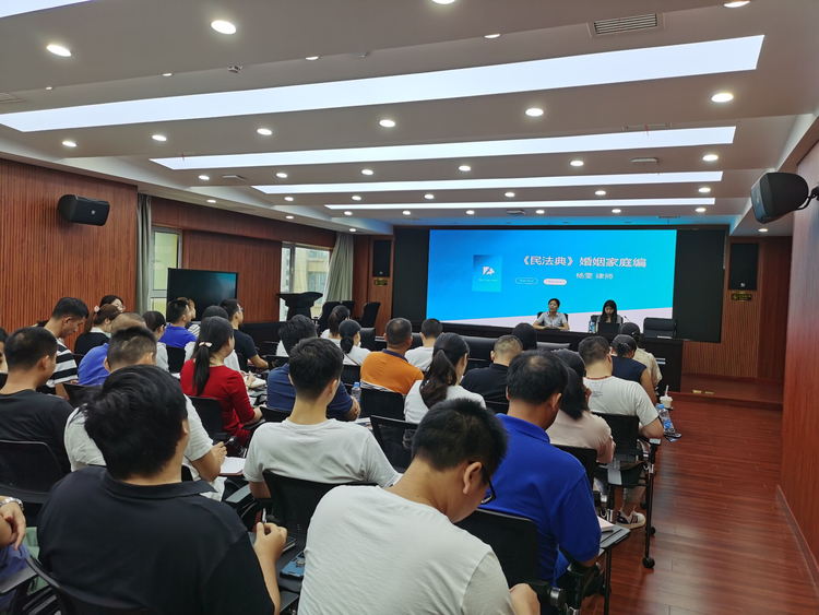 隨后,楊雯律師圍繞著《民法典》婚姻家庭相關(guān)內(nèi)容,給員工介紹《婚姻法》的基本原則、夫妻共同財產(chǎn)如何分配等內(nèi)容,通過理論和實例相結(jié)合的方式,從結(jié)婚、婚姻登記制、離婚、撫養(yǎng)等幾個方面進(jìn)行了全面的解讀。
