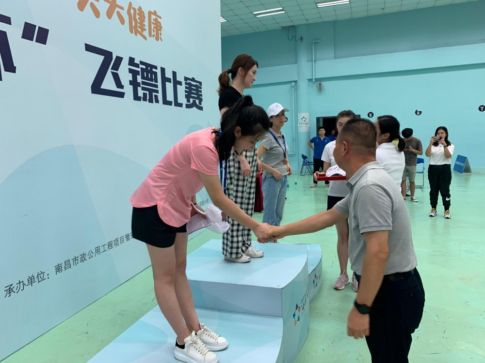 A:嗯,是的。在訓練的時候與資產(chǎn)選手進行了一些交流,指導了她一些投鏢動作,后來在比賽中她奪得了冠軍,我也為她高興,友誼第一、比賽第二,能在賽場上認識新朋友也是我參加此次五運會的收獲。