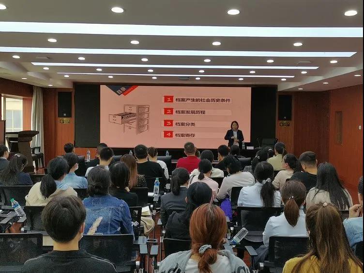 為進一步加強和規(guī)范公司內(nèi)部檔案管理工作,促進檔案管理規(guī)范化、標準化建設(shè),提升檔案工作整體管理水平,9月28日下午,公司邀請從事多年檔案管理工作具有豐富檔案整理經(jīng)驗的董老師開展檔案管理專題培訓(xùn),公司綜合部部長袁婧瑛主持并講話,各片區(qū)分公司、各部門共50余人參加。