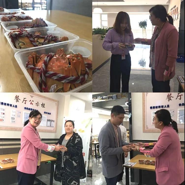“你們辛苦了!”這是今天中午,綜合部部長(zhǎng)袁婧瑛在為膳委會(huì)十月參與早起驗(yàn)菜的成員贈(zèng)送螃蟹時(shí),說(shuō)的最多的一句話。