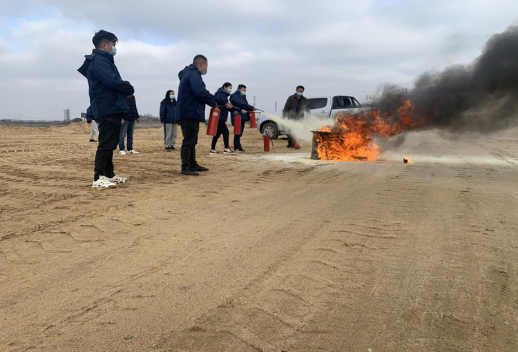 為了進一步強化公司員工的消防安全技能,提高冬季火災防控能力和突發(fā)事件應變能力,學會正確使用滅火器和各類消防器材、設備、設施。2021年2月3日下午,贛昌砂石公司高新片區(qū)員工在片區(qū)負責人鄧戎,經(jīng)理助理熊日歷、吳啟凡的帶領下,在尤口砂場空地組織開展了一次冬季消防安全演練。