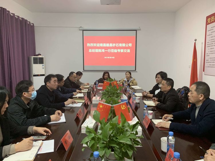 3月10日,贛昌砂石公司總經(jīng)理陳鴻,公司總經(jīng)理助理葉劍飛,公司副總工程師、配送服務(wù)中心負責人饒燕一行前往江西省贛撫建材資源開發(fā)有限公司交流學習。