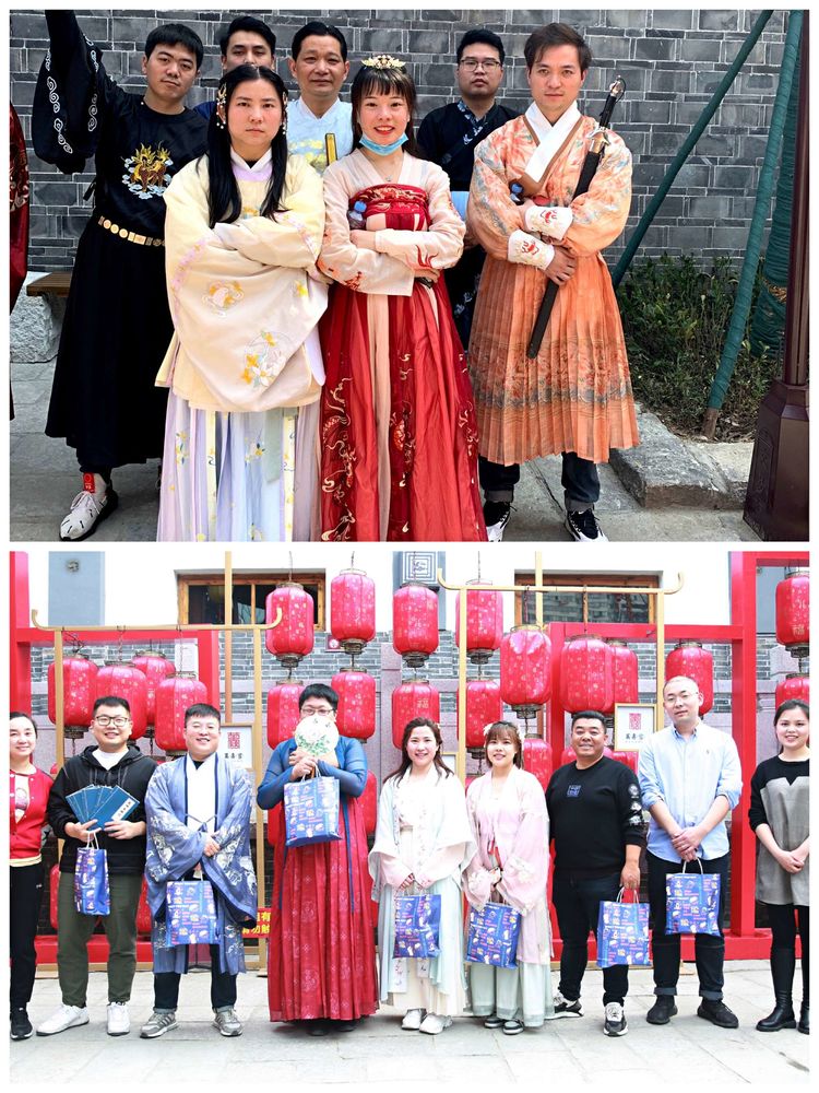 活動現(xiàn)場,大家身著中華傳統(tǒng)文化的漢服,帶著尋寶任務(wù)游走在萬壽宮歷史文化街區(qū)拍照打卡,開啟了一段國風文化之旅。
