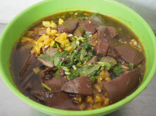別說(shuō),小店的豬血粉還是非常美味的,如豆腐腦般鮮嫩的活血旺與滑溜溜的南昌米粉搭配,滾上熱湯,灑點(diǎn)蔥花、小米椒、蝦皮,調(diào)上生抽,淋上香油,起鍋上桌,鮮香四溢。特別是在寒冷的冬天,我總是喜歡下樓嗦上一碗熱騰騰的豬血粉,全身立馬就暖暖的。