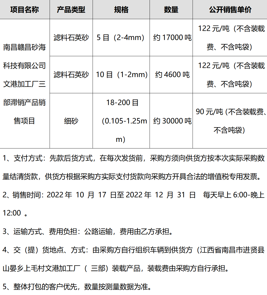 南昌贛昌砂海科技有限公司擬對(duì)文港加工廠三部滯銷產(chǎn)品采用公開銷售的的方式,現(xiàn)將公開銷售的有關(guān)情況公告如下: