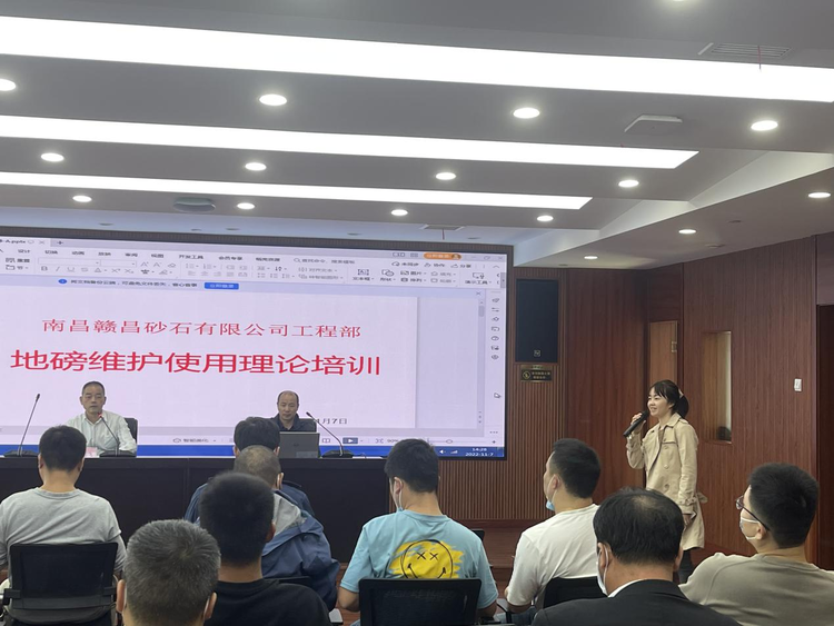 2022年11月7日下午,贛昌砂石公司工程部組織各片區(qū)、各分公司等生產一線部門共計50名員工在公司22樓會議室開展地磅維護使用理論培訓。培訓由工程部負責人黃露主持,公司總經理助理葉劍飛參加開班儀式。