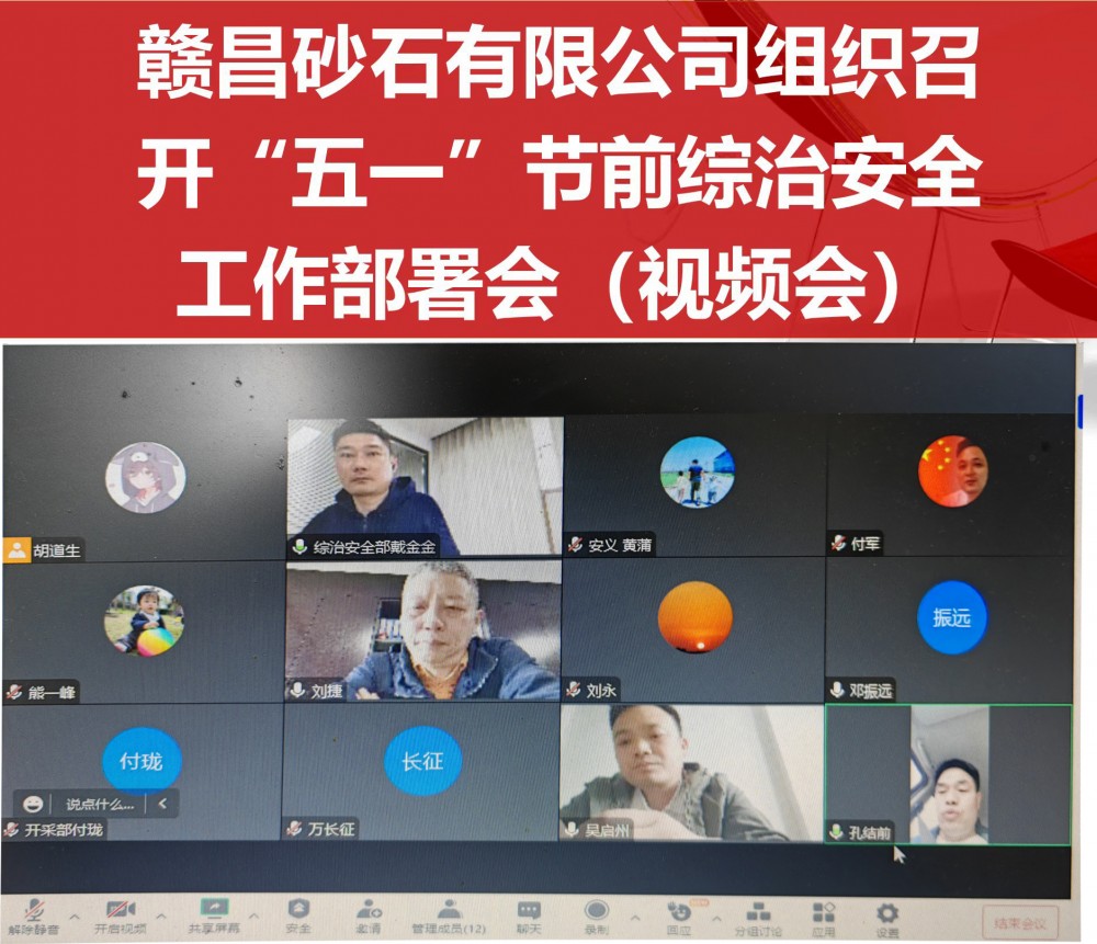 4月28日下午,贛昌砂石公司組織召開“五一”節(jié)前綜治安全工作部署視頻會,公司副總經(jīng)理劉捷出席并講話,綜治安全部及各一線分管安全相關(guān)人員參加。