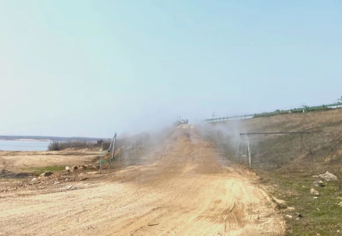為加大降塵力度,以清湖砂場(chǎng)為試點(diǎn),建設(shè)了噴淋降塵設(shè)備,對(duì)砂場(chǎng)進(jìn)場(chǎng)道路、作業(yè)區(qū)等重點(diǎn)部位進(jìn)行噴淋降塵,噴淋降塵覆蓋面廣且在砂場(chǎng)發(fā)貨時(shí)間段不間斷作業(yè),對(duì)于砂場(chǎng)日常道路揚(yáng)塵抑制起到了立竿見影的效果。