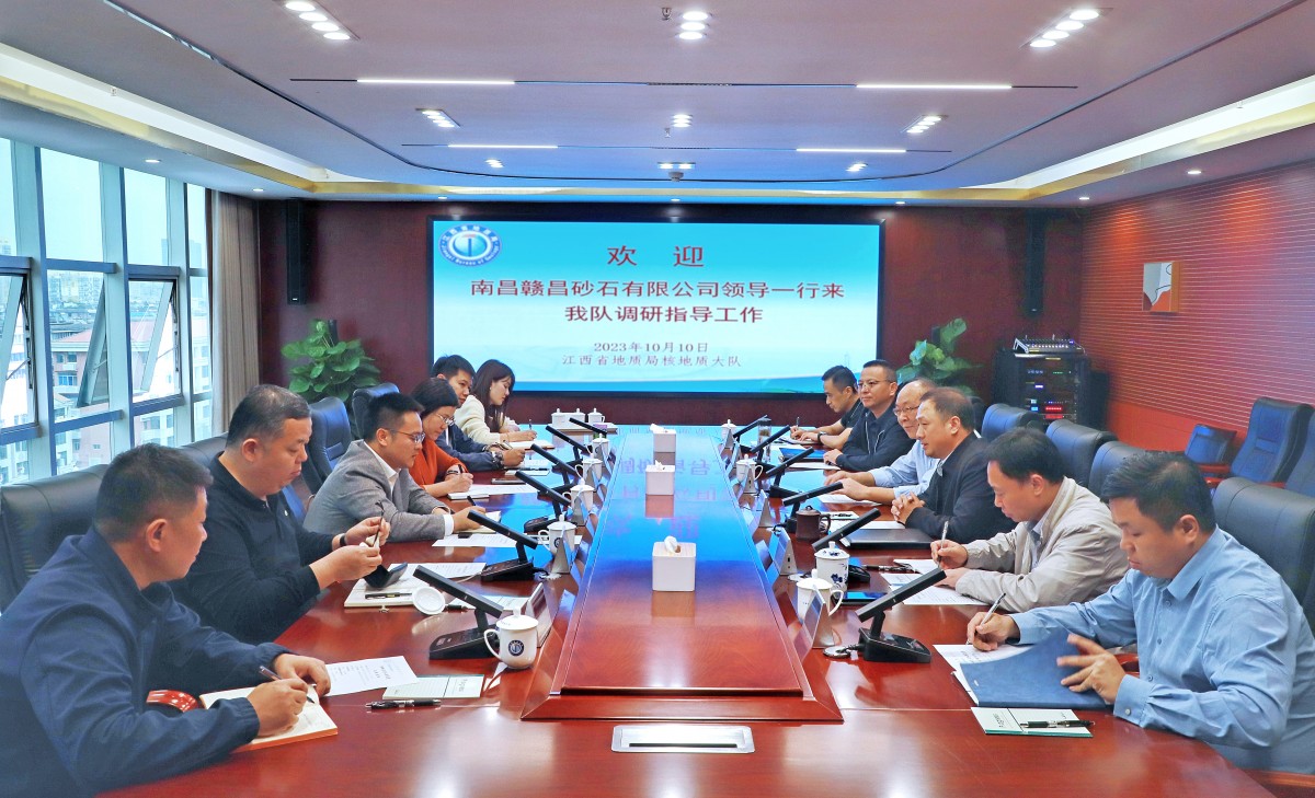 10月10日下午,南昌贛昌砂石有限公司黨委書記、董事長(zhǎng)唐曉飛一行赴江西省地質(zhì)局核地質(zhì)大隊(duì)交流學(xué)習(xí),并與江西省地質(zhì)局及江西贛核地質(zhì)有限公司展開(kāi)座談。贛昌砂石公司副總經(jīng)理,南昌贛昌砂海科技有限公司黨支部書記、董事長(zhǎng)蔡安煜,贛昌砂石公司副總工程師、南昌贛昌砂海科技有限公司總經(jīng)理饒燕及相關(guān)人員一同前往。江西省地質(zhì)局二級(jí)巡視員唐維新,江西贛核地質(zhì)有限公司黨委委員、隊(duì)長(zhǎng)何復(fù)亮,黨委委員、副隊(duì)長(zhǎng)兼總工程師張運(yùn)濤,黨委委員、副隊(duì)長(zhǎng)唐小泉等同志出席座談會(huì)。