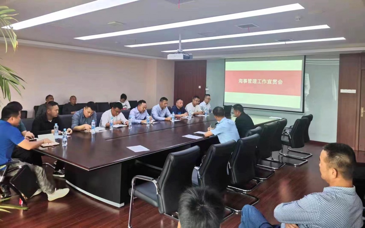為保障采區(qū)船舶作業(yè)安全,加強(qiáng)水路機(jī)具規(guī)范管理,10月30日,南昌市交通運(yùn)輸綜合行政執(zhí)法支隊(duì)海事(港航)大隊(duì)副隊(duì)長(zhǎng)余朝暉一行來(lái)到贛昌砂石公司開展海事管理工作宣貫,贛昌砂石公司黨委委員、副總經(jīng)理張軍茂及開采管理中心、生產(chǎn)管理部、各采區(qū)航運(yùn)公司業(yè)主等相關(guān)人員參加。