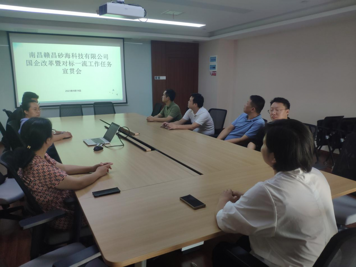 為全面貫徹落實(shí)國(guó)務(wù)院國(guó)資委、省市國(guó)資委和集團(tuán)關(guān)于國(guó)企改革、對(duì)標(biāo)一流工作的相關(guān)文件要求,9月19日,南昌贛昌砂海科技有限公司召開(kāi)了國(guó)企改革暨對(duì)標(biāo)一流工作任務(wù)宣講會(huì),會(huì)議由公司總經(jīng)理饒燕主持,公司領(lǐng)導(dǎo)班子成員、各部門(mén)負(fù)責(zé)人及相關(guān)工作人員參會(huì)。
