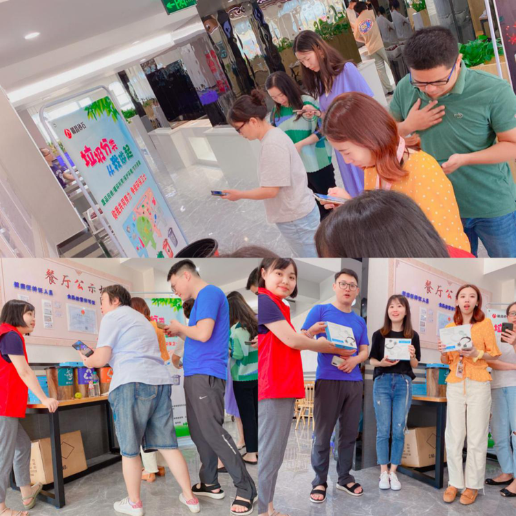 垃圾分類志愿者們以現(xiàn)場實物分類的形式并結(jié)合垃圾分類圖解的展板,生動詳細地講解了日常生活垃圾應(yīng)如何分類及處理,同時組織現(xiàn)場多名員工掃碼參與了生活垃圾分類有獎問答活動,并發(fā)放獎品。
